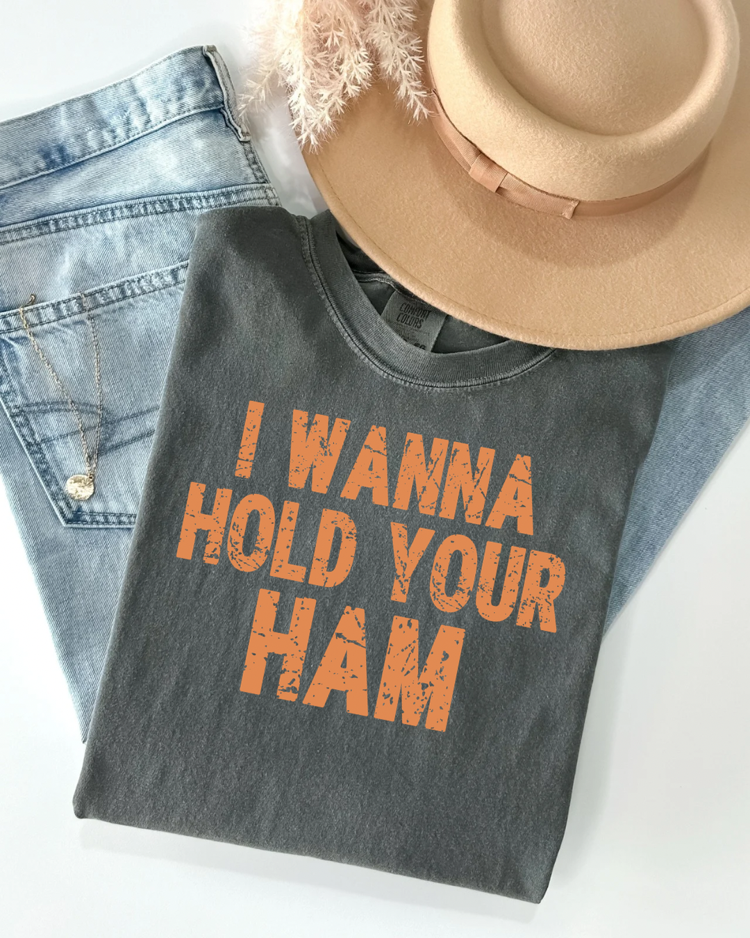 I want to hold your Ham Thanksgiving Tee Bring the laughs to your Thanksgiving feast with this cheeky tee that flips a classic tune into pure comedy gold. Whether you're team ham or just love a good food pun, this shirt celebrates the silly side of the holiday season. Comfortable enough to wear all day—from prep work to post-dinner naps—it's the perfect conversation starter for anyone with a sense of humor and an appetite for fun.