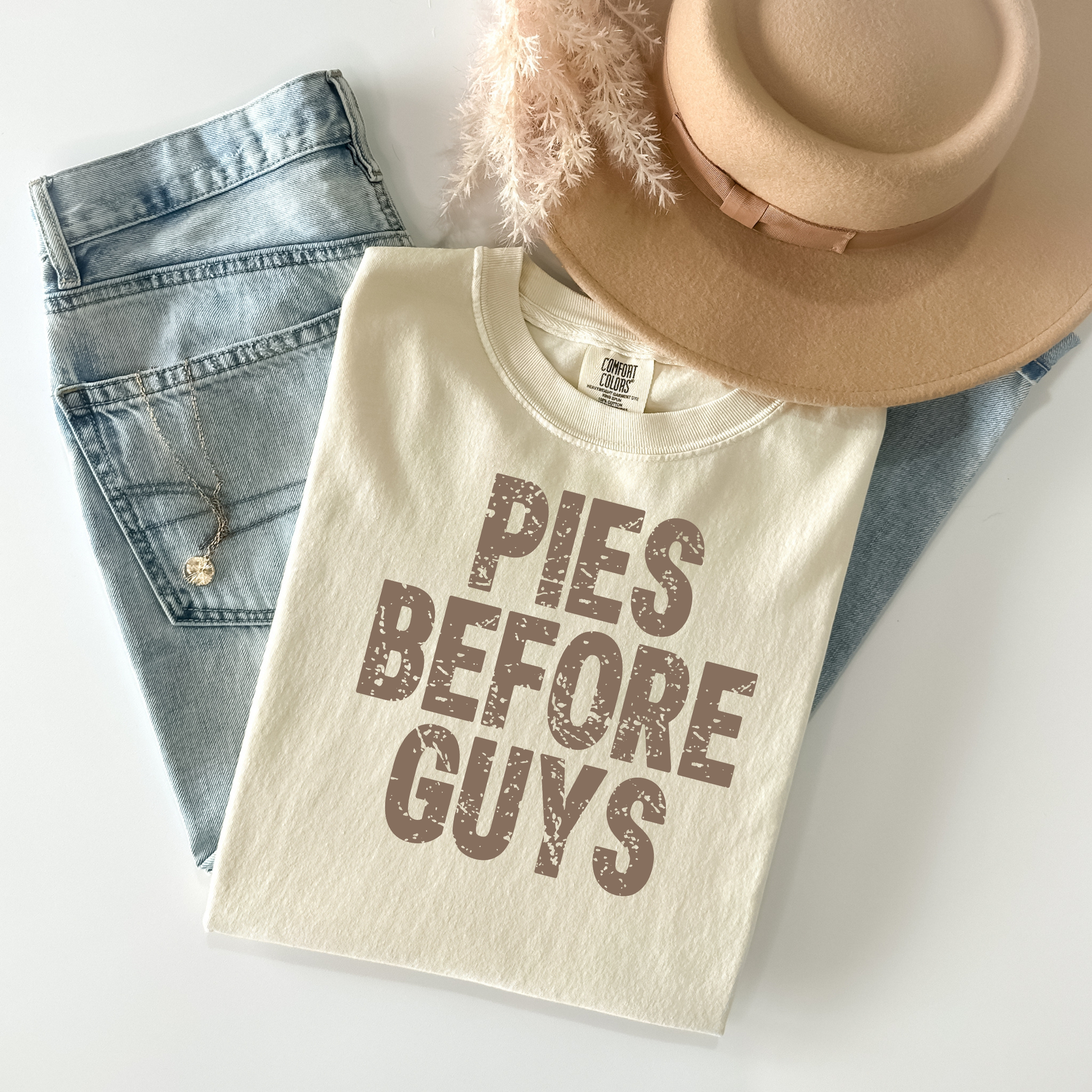 Show your priorities this Thanksgiving in this cheeky tee that celebrates what really matters—delicious pie. Whether you're a dessert devotee or just love a good laugh, this shirt is your chance to declare your sweet tooth allegiance with humor and charm. Comfortable enough for holiday gatherings and bold enough to turn heads, it's the perfect pick for anyone who knows that pie season is the best season. Wear it proud and let everyone know where your heart truly lies.