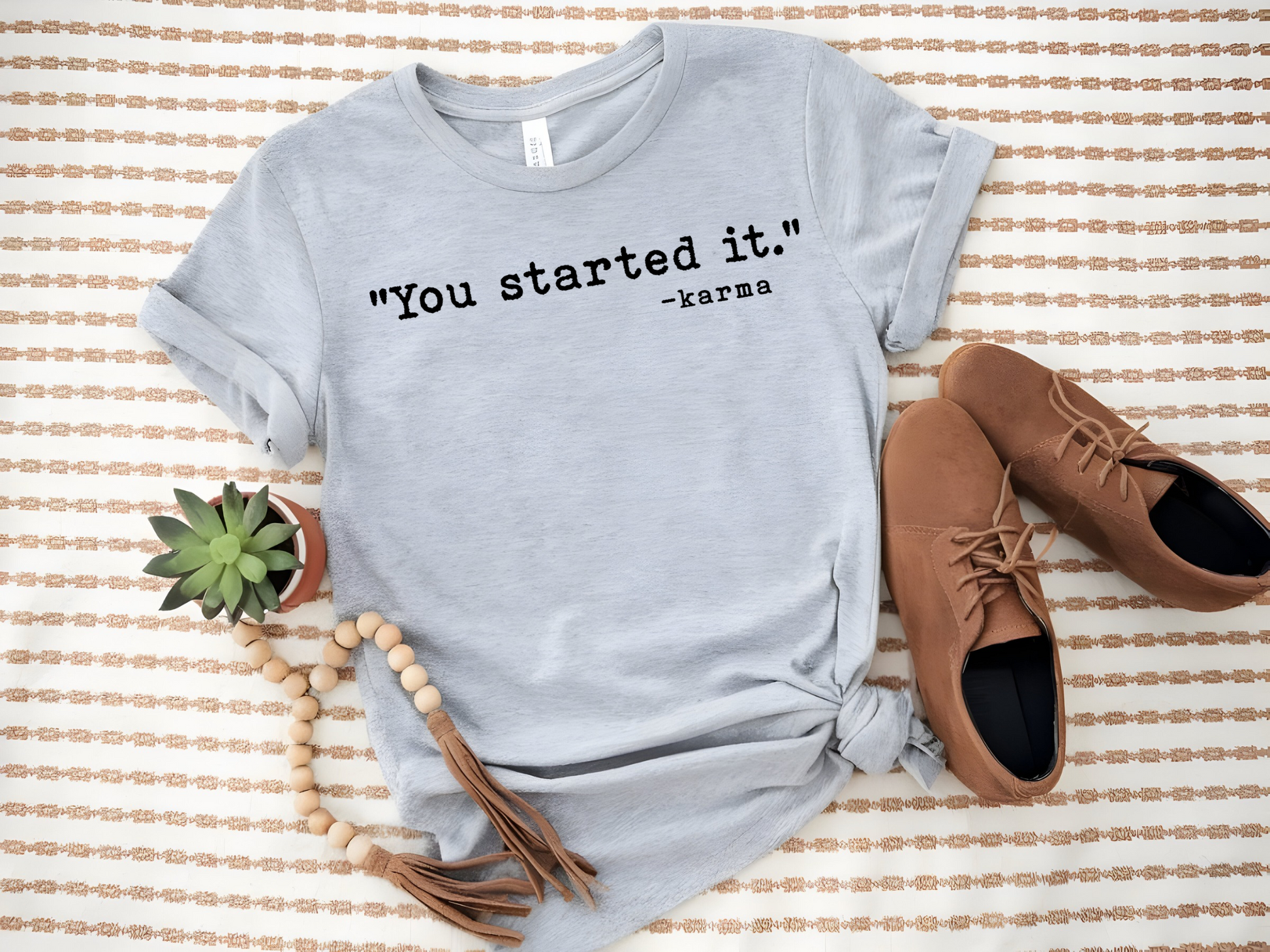 Turn up the fun with the "You Started It" Tee—a playful way to toss the blame and spark laughter. Crafted for comfort and cheeky style, this tee is perfect for anyone who loves a good-natured tease. Wear it to break the ice or keep the friendly banter going all day long.